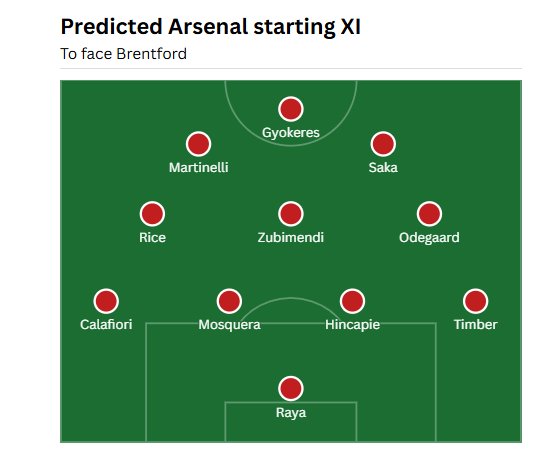 Subs: Arrizabalaga, Timber, Lewis-Skelly, Norgaard, Nwaneri, Eze, Saka, Jesus, Gyokeres