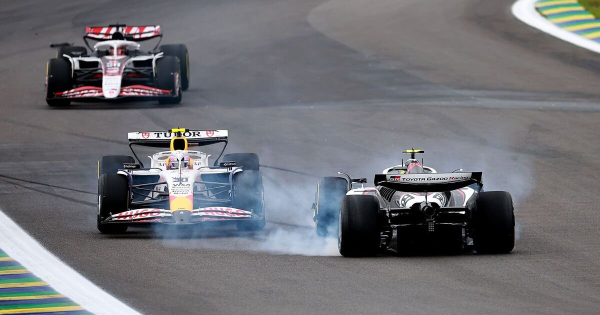 Aconteceu na primeira volta, quando Lawson tentava ultrapassar o piloto da Haas. Eles acabaram se tocando na curva quatro da pista de Interlagos, cada piloto culpando o outro por causar o contato com Bearman furioso por ter sido girado e o piloto do Racing Bulls inflexível de que havia sido empurrado para fora da pista por seu rival britânico antes da colisão.