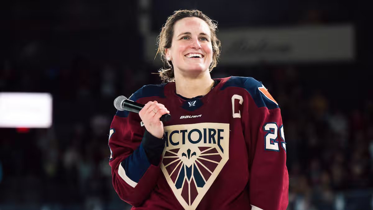 Marie-Philip Poulin, Ann-Renée Desbiens e Laura Stacey auront para a estreia foi uma estatueta à tête branlante à sua efígie no uniforme da Victoire de Montréal.