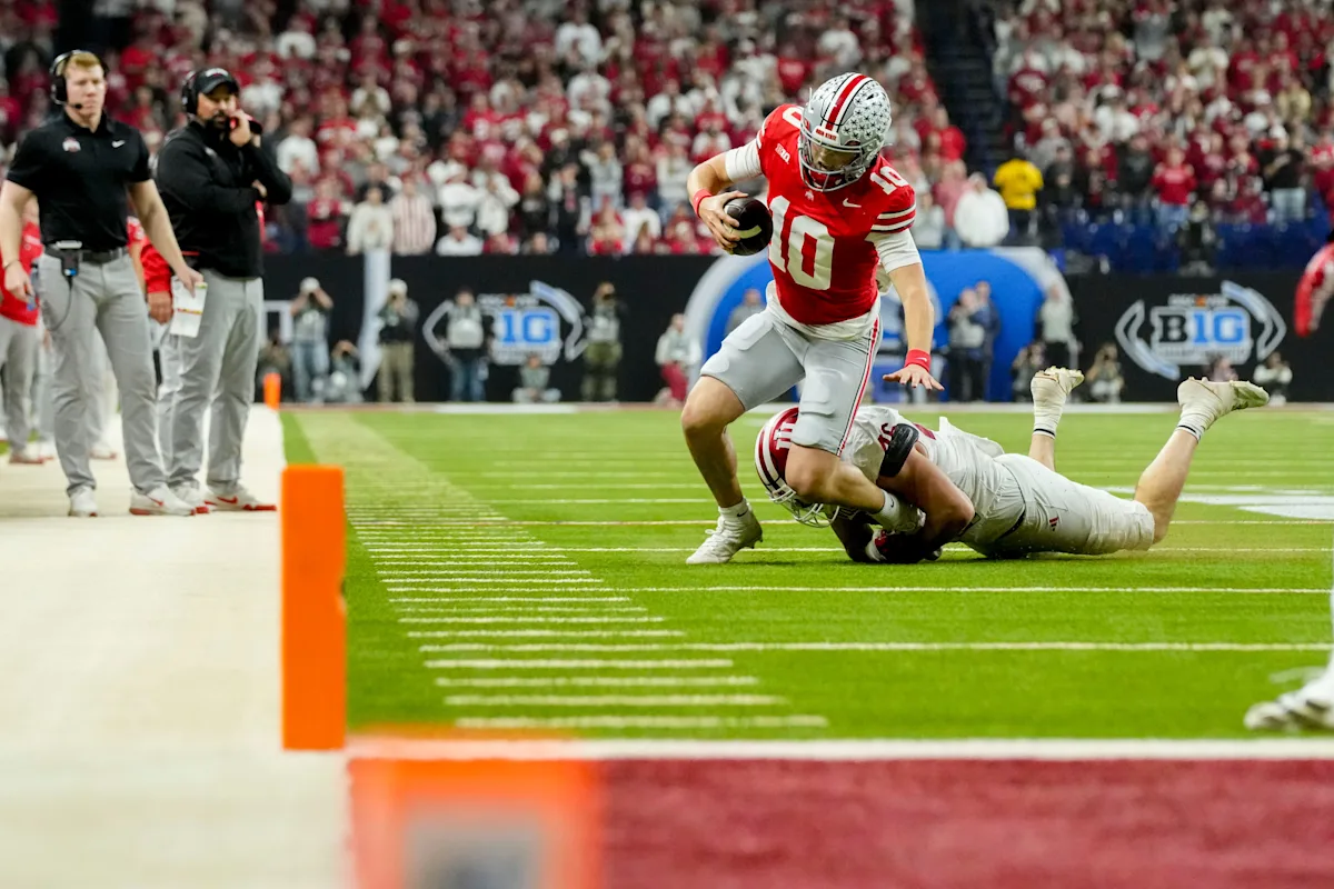 INDIANÁPOLIS – Em um quarto para 1 essential no Indiana 5 com o Hoosiers liderando por 13-10 faltando 1:38 para o fim do terceiro quarto, o quarterback do estado de Ohio, Julian Sayin, alinhou-se para uma jogada de quarterback.