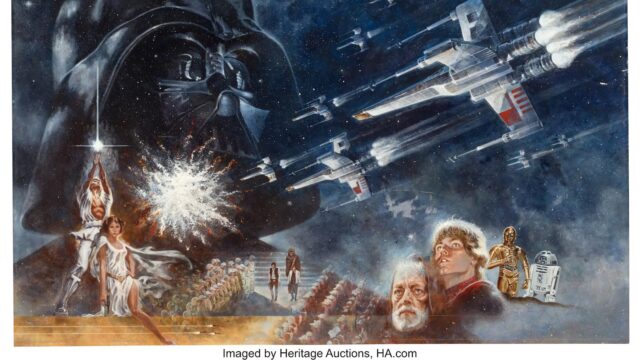 A pintura que introduziu “Guerra nas Estrelas” para o mundo há quase 50 anos – e foi reproduzido em um icônico pôster de filme – vendido em leilão na quarta-feira por US$ 3,875 milhões.