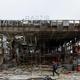 Fumaça sobe de um prédio de estação ferroviária fortemente danificado na cidade de Fastiv, região de Kiev, após um ataque aéreo, em 6 de dezembro de 2025, em meio à invasão russa da Ucrânia | Crédito da foto: AFP