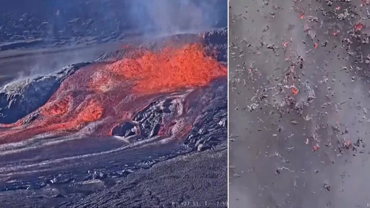 Uma câmera remota no vulcão Kīlauea em erupção no Havaí capturou o momento em que uma fonte de lava o engoliu e o desligou no sábado. Kilauea, um dos vulcões mais ativos do mundo, está em erupção intermitente desde 23 de dezembro de 2024.