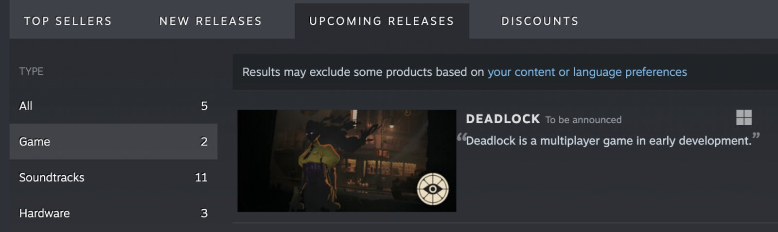 Além disso, há um página de próximos lançamentos especificamente para produtos Valve no Steam. Embora a guia “Jogos” mostre apenas o jogo de tiro multijogador em desenvolvimento da Valve Impasse no momento, há um pequeno “2” próximo a ele, o que significa que pode haver mais um jogo não anunciado ao lado dele. Como observou Kotaku, alguns acreditavam que 18 de novembro seria o dia do anúncio porque foi quando Alix foi anunciado há vários anos, mas esse dia chegou e passou sem nada.