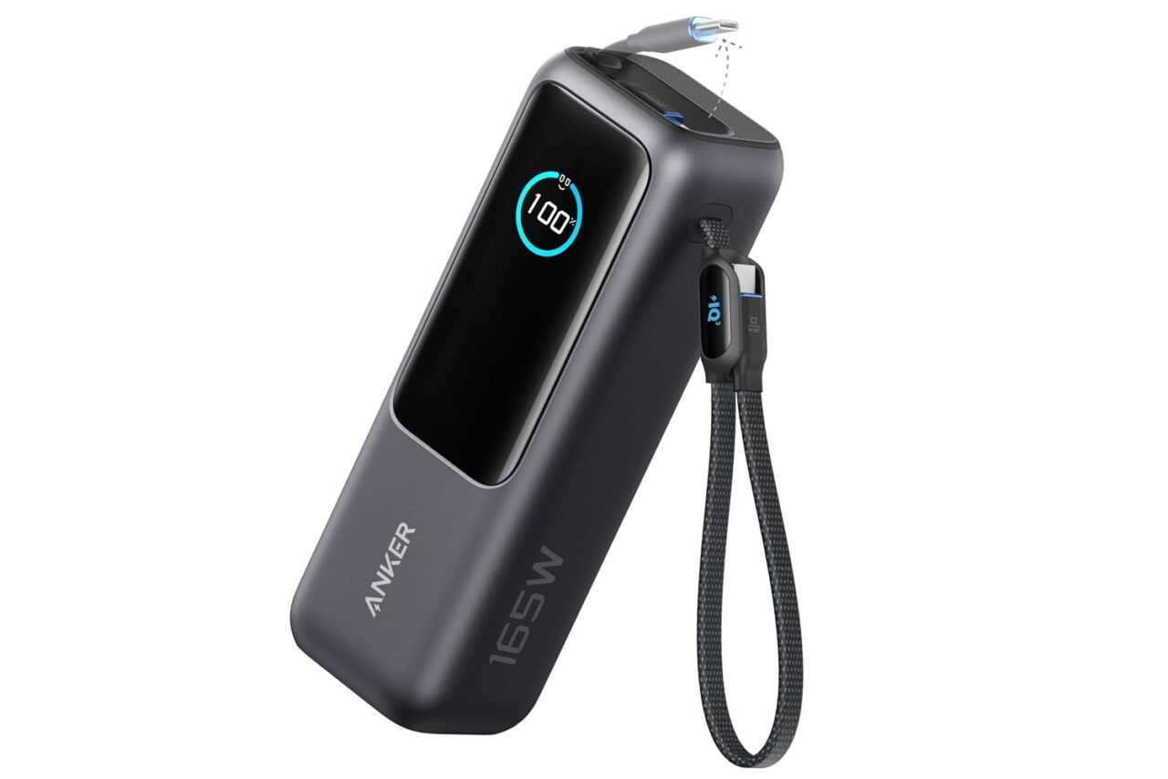 Anker construiu dois cabos diretamente no corpo do banco de potência para eliminar aquele momento frustrante de compreensão quando você embalou o carregador, mas deixou os cabos em casa. Um USB-C se estende até 2,3 pés e retrai de volta para a unidade depois de terminar, construída para suportar mais de 20.000 puxadas antes de se desgastar. O o segundo cabo chega a 0,98 pés e funciona como uma alça de transporte, permitindo pendurar o banco de energia no pulso ou na mochila.