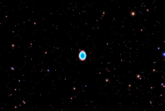 Eu me envolvo com astronomia amadora e as nebulosas planetárias estão entre meus alvos favoritos. Esses objetos não têm nada a ver com planetas; os primeiros astrônomos os nomearam assim porque, vistos através de pequenos telescópios, eles se assemelhavam a gigantes gasosos distantes como Saturno e Júpiter. M57, também conhecida como Nebulosa do Anel, é um exemplo disso, como você pode ver na minha própria imagem do objeto abaixo. O termo “nebulosa planetária” — frustrantemente — pegou, embora sejam, na realidade, conchas brilhantes de gás ejetadas por estrelas moribundas.