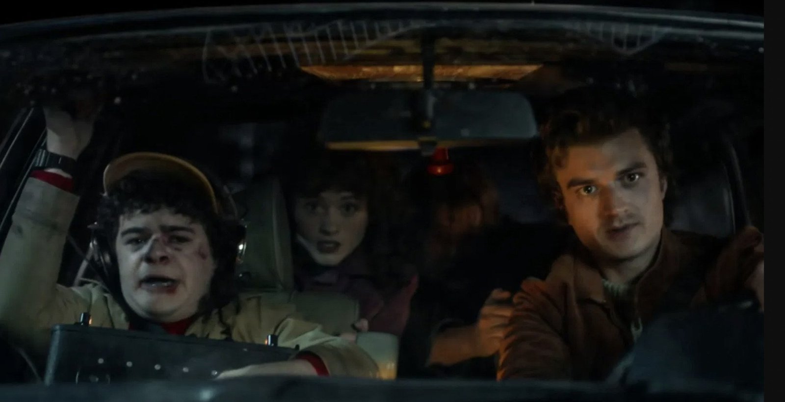Dustin (Gaten Matarazzo) usa sinais de rádio para invadir as linhas usadas pela base governamental no Upside Down, guiando a busca clandestina de Hopper por Vecna com a ajuda da van de Steve, que foi transformada em uma estação de rádio móvel. Mike (Finn Wolfhard), Lucas (Caleb McLaughlin), Erica (Priah Ferguson) e Will (Noah Schapp) também apoiam o uso da rede de ferramentas da estação; é quase como se a cidade tivesse se tornado um verdadeiro D&D mesa para brincar, o que é uma recompensa muito inteligente de como tudo começou com as crianças no porão. Tudo isso move a ação em um ritmo alucinante e é acompanhado pelos horrores do Upside Down que pretende atacar Hawkins.